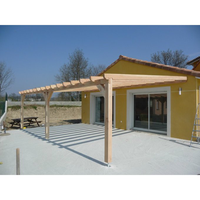 Fabrication de pergola sur mesure en bois Douglas rabotée et non traitée . Le bois provient de la région Rhône Alpes Auvergne(France)